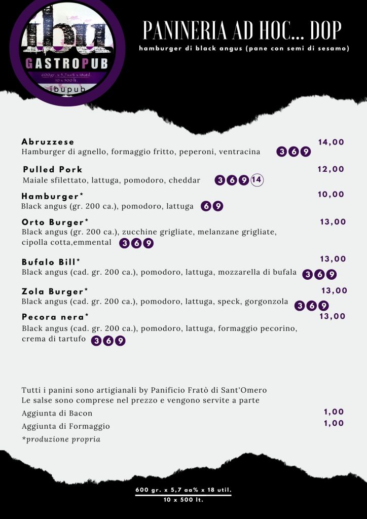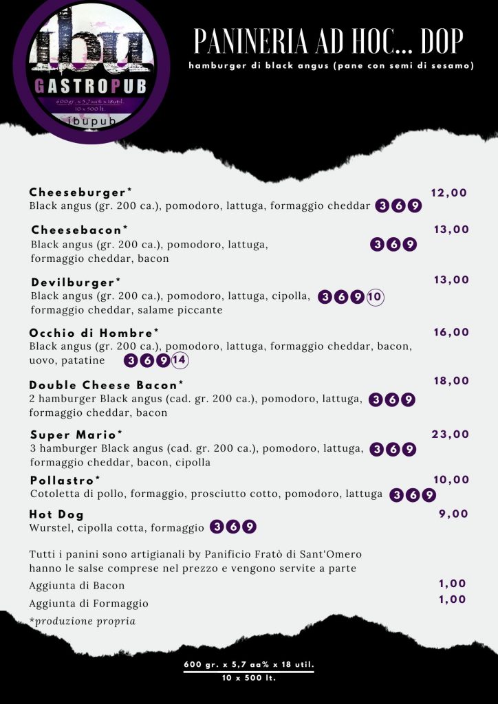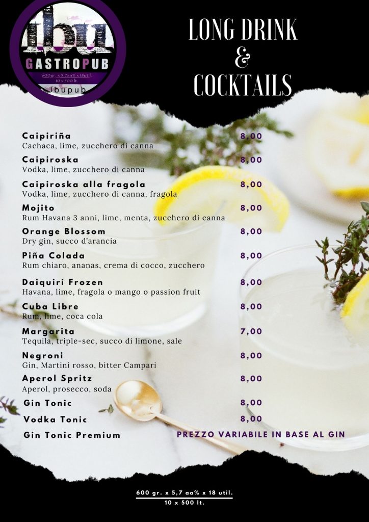 IBU Gastropub Menu